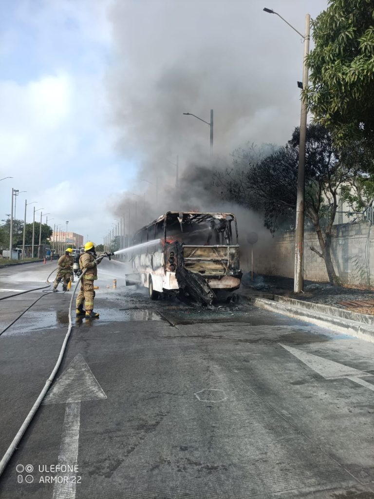 La Dirección Nacional de Bomberos de Colombia (DNBC) informa a la ciudadanía sobre la atención de un incendio vehicular ocurrido el 9 de abril de 2026 en la estación de transporte masivo Transmetro, específicamente en el retorno del Portal de Soledad.